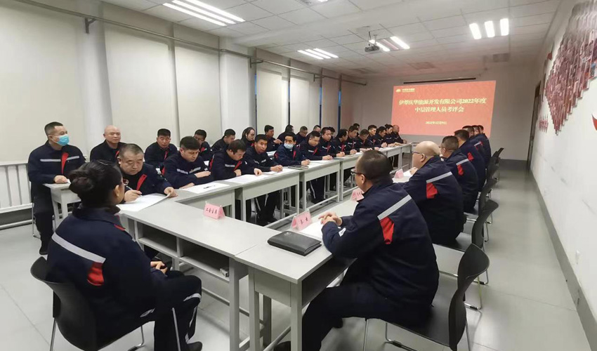 中国庆华新疆消息(秦晓春)12月9日,伊犁庆华能源开发有限公司2022年度中层管理人员述职及技术人员考评大会在办公楼培训室举行??罅斓及嘧?、各部门正副职及技术人员共50人参加考评?;嵋橛晒揪碇砑孀酆习旃抑魅窝钌种鞒帧?br />