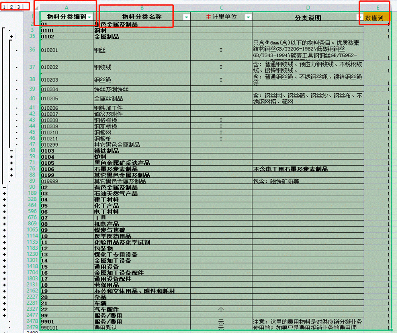 例1:经过多次修订,中国庆华集团统一规定了物料编码规则和编码名称如下图: